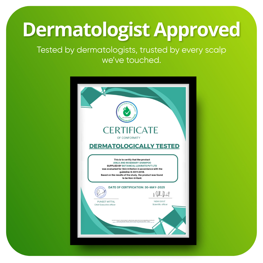 We use Amla and Rosemary extracts. Amla nourishes the scalp, while Rosemary supports a healthier scalp environment and helps control dandruff.